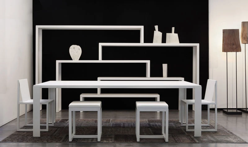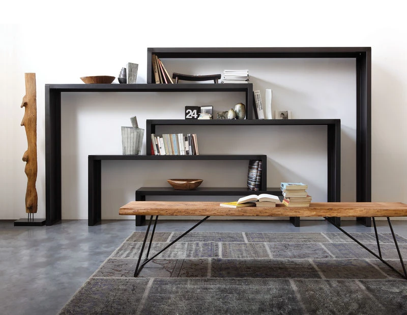 Superb set of 5 consoles designed by Maurizio Peregalli. This console corresponds exactly to the ZEUS philosophy: the creation of products that are authentic and handmade with simplicity, both useful and affordable. PLEASE NOTE: the phosphate steel is a material which requires a particular attention. Avoid water stagnation and direct contact with sources of heat (hot pans, hot mugs, etc) so not to mark the material.