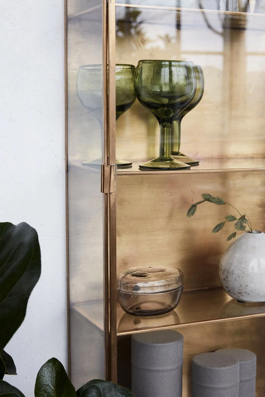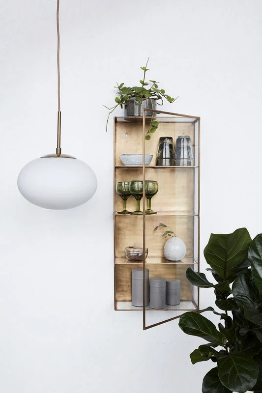 Precious transparence… Very elegant, this wall shelf is designed like a showcase and has a door with a small handle. It tastefully combines materials: transparent glass with noble brass. Showcased in this beautiful piece, your books and other objects will resemble museum pieces. The Cabinet shelf is well named, with its retro design, and evokes the curiosity cabinets of the 16th century. The Cabinet shelf hangs from the wall, two screw holes on the back of the top shelf for this purpose.