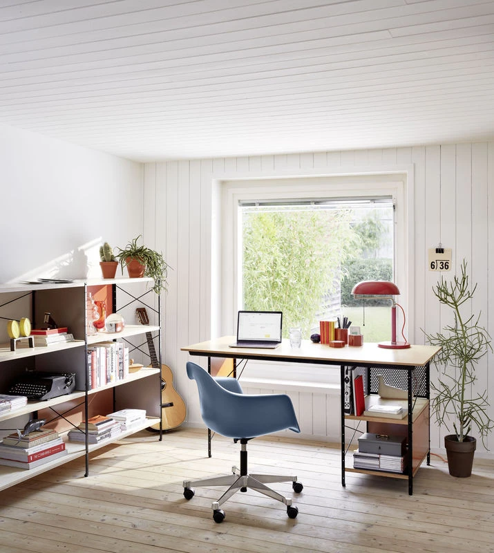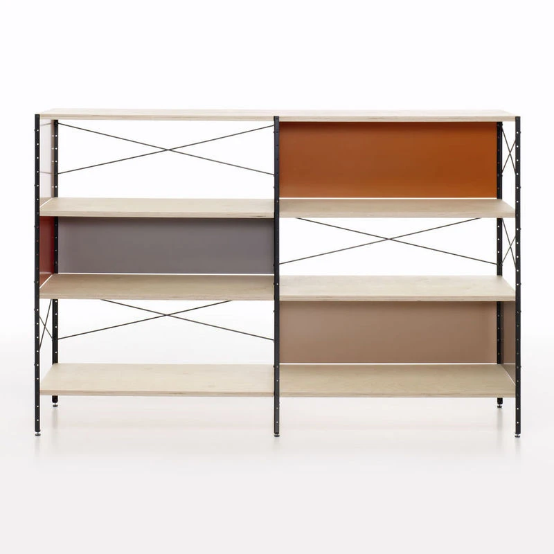 Treat yourself to an ORIGINAL iconic piece by Vitra. An original will always hold its value. It will stay with you for your whole life and outlast you, to be passed on to the next generation. Swiss design house Vitra is the only company authorised to manufacture Charles & Ray Eames products for Europe: if you own an Eames product manufactured by Vitra, you can be sure it’s an original. Charles and Ray Eames are two of the most important designers of the 20th century. It was in 1949 that Charles and Ray Eames developed their innovative desk and shelving system, called the Eames Desk Unit (EDU) and Eames Storage Unit (ESU) respectively, inspired by the same aesthetic as the iconic Eames House. Nestled on the heights of Los Angeles, the home of the famous couple of designers mixes natural wood and black metal. It is recognisable by its facades brought to life by panels of primary colours, which give it the air of a Mondrian painting. Much like the Eames House, built at the same time, the ESU shelving units and EDU desk were designed according to the principles of industrial series production. The ESU multifunctional shelving system combines natural birch veneer shelving with black lacquered steel structures. Colourful aluminium panels punctuate the spaces, adding rhythm and a playful dimension. The shelves correspond to the standard height of files.? In collaboration with the Eames Office, Dutch designer Hella Jongerius gave the ESU shelves a new lease of life by revising their chromatic range. A new assortment of colours has been carefully defined to bring a touch of freshness and modernity to the ESU shelves, while retaining the vintage spirit of 1949 and 1950.? The ESU Shelf system is available in several heights, from the low sideboard to the tall bookcase.