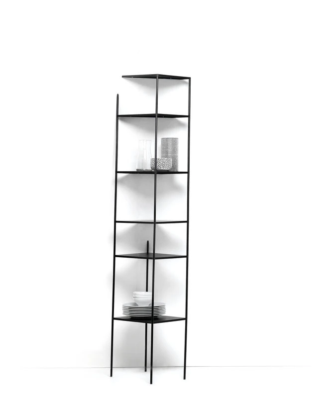 Fun and mischievous, the Mama’ wall shelving unit plays with our perceptions! Slanted and half-visible, it seems as though it is within the wall, but it is only an optical effect. The Mama’ wall shelving unit is perfectly stable, practical and independent. Its design is the result of in-depth and passionate work on the optical effect, movement, the visible and the supposed. Despite its mistreated or even weakened appearance, Mama is a robust and well designed unit. Each of the shelves is firmly fixed to 2 of the 4 uppers at the least. The whole of the unit rests on the 4 feet and on the wall which accommodates it (wall fastening necessary). Mama’ wall has 6 perfectly horizontal shelves. Sculptural and unusual, Mama will hold your books and trinkets for the most outstanding display!