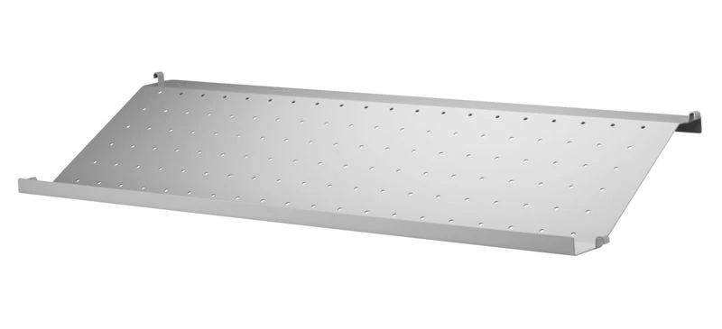 | Characteristics | Shelf fits String System uprights 30 cm deep – Inclined perforated shelf with rim |