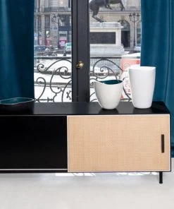 Essence Television Table – / L 140 X H 42 Cm – Wood & Rattan – Maison Sarah Lavoine